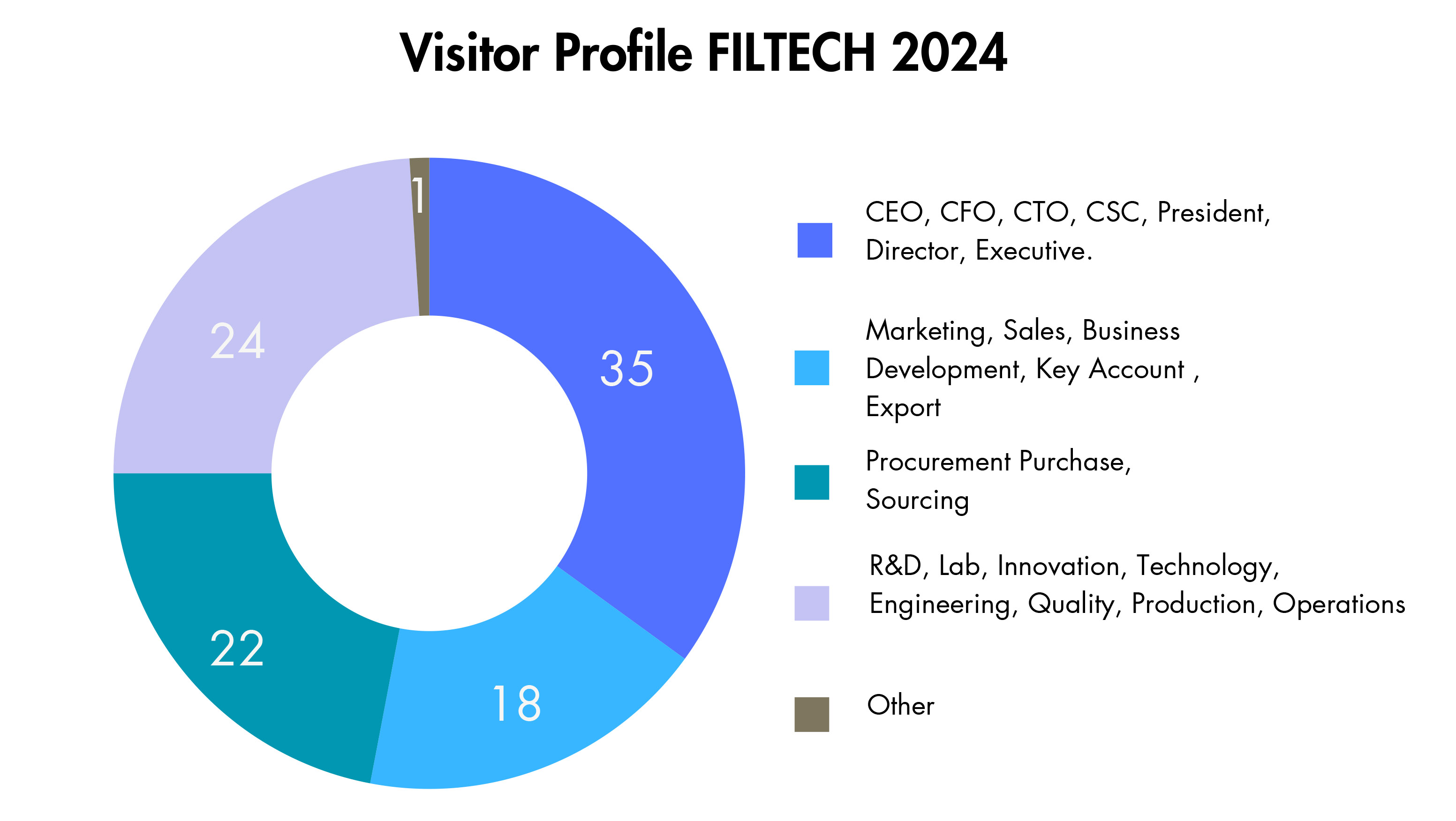 The FILTECH 2024 Show was the largest event ever with 591+ Exhibitors and will set a strong signal for further growth of the world-wide filtration and separation sector. At FILTECH 2024 61,4% of the participants came from outside of Germany. A substantial increase was registered in the number of trade visitors from Northern Africa (plus 7,8%), South America (plus 5,7%) and the Middle East (plus 4,6%).