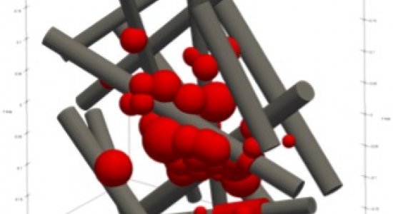 Most simulation models assume that the nonwoven can be represented as a porous microstructure formed by individual fibers with (usually) different diameters. In reality, however, a certain proportion of the fibers forms bundles (Figure 1). This effect is process-related (e.g., meltblown process) and cannot be completely avoided. The formation of fiber bundles has a positive effect on the material properties: The bundles improve mechanical stability and increase the air permeability of the nonwoven fabric, since for a given fiber volume fraction, there are larger pore spaces than in the case of a microstructure consisting exclusively of individual fibers. On the other hand, larger pore spaces have a negative effect on filter efficiency.