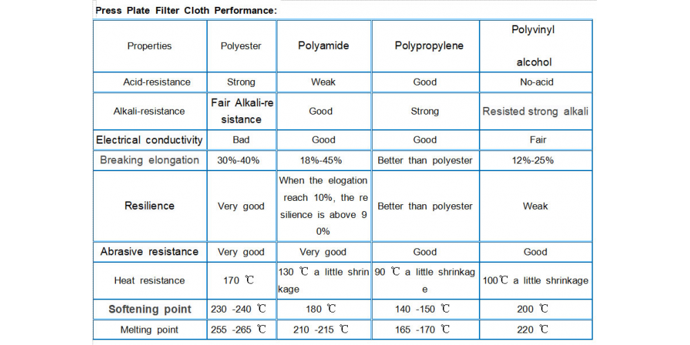 - Unloading performance: non-woven filter cloth<plain filter cloth<twilll filter cloth<satin filter cloth;